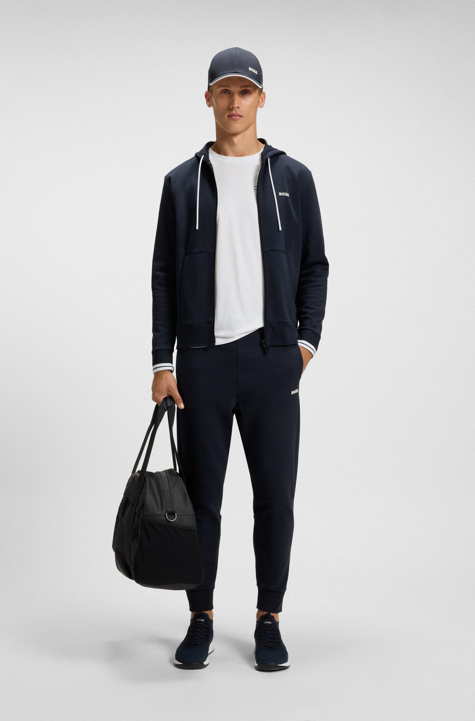 Chándal Hombre regular fit, diseñados con un logo moldeado y rayas de aire deportivo, son un básico fácil de combinar. De algodón con elástico. Bajos con puños.